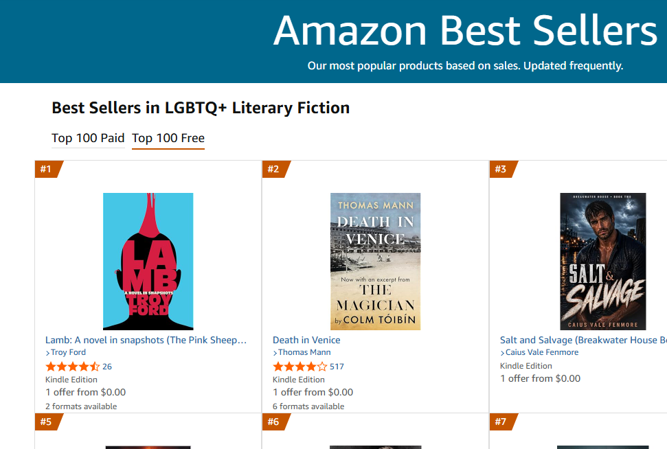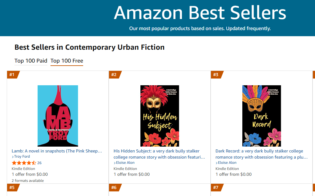 And in Contemporary Urban Fiction. Yes, it’s the Free Kindle list, but it’s bringing some much needed visibility ahead of Waterspout’s July release. Here’s hoping some of these new readers are moved by it and love it and want to buy the Waterspout pre-order too.